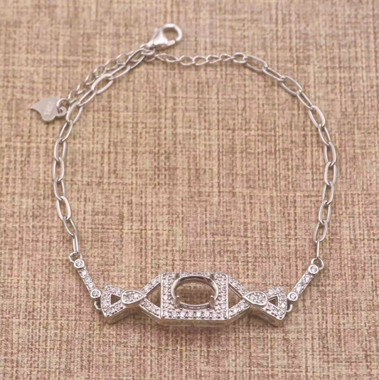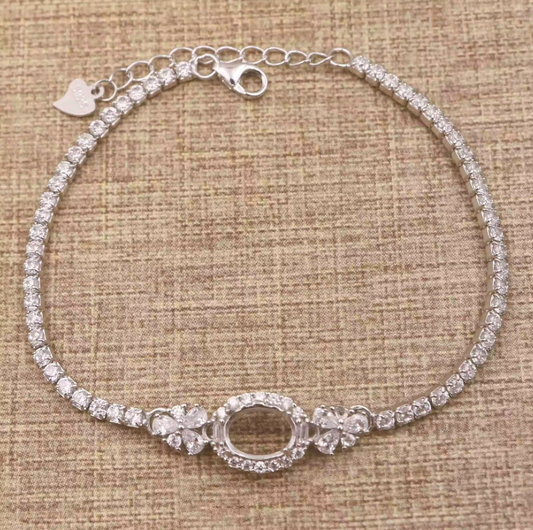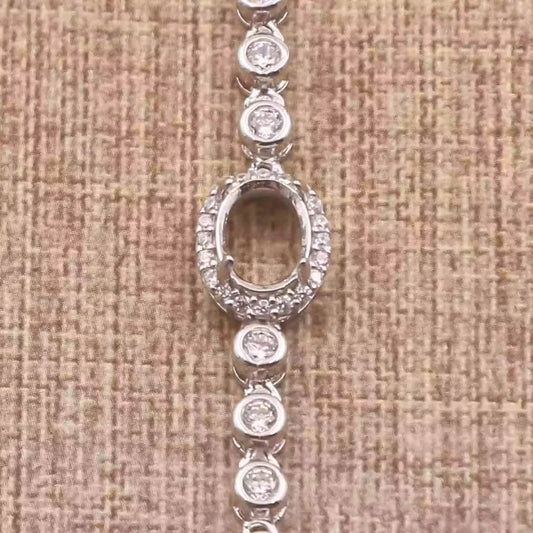 Miners Bench® Opal Friendly Prong / Claw Setting Sterling Silver 925 Bracelet Setting for 8mmx6mm Oval main stone part set with Cubic Zirconia SETB603-8X6