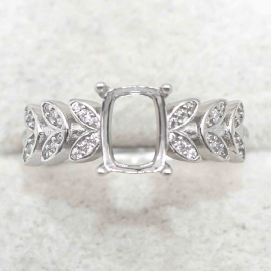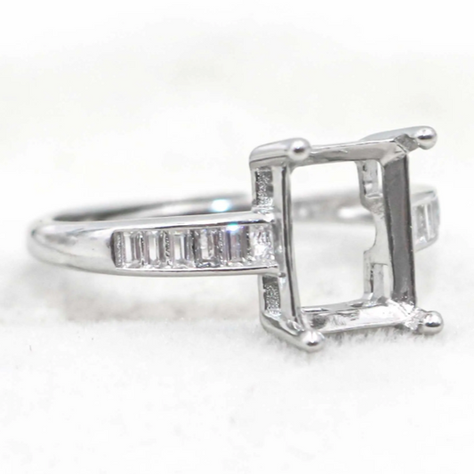 Miners Bench® Opal Friendly Prong / Claw Setting Sterling Silver 925 Adjustable Ring Setting for Square 8x6mm main stone part set with Cubic Zirconia SETFJ77-8x6-A