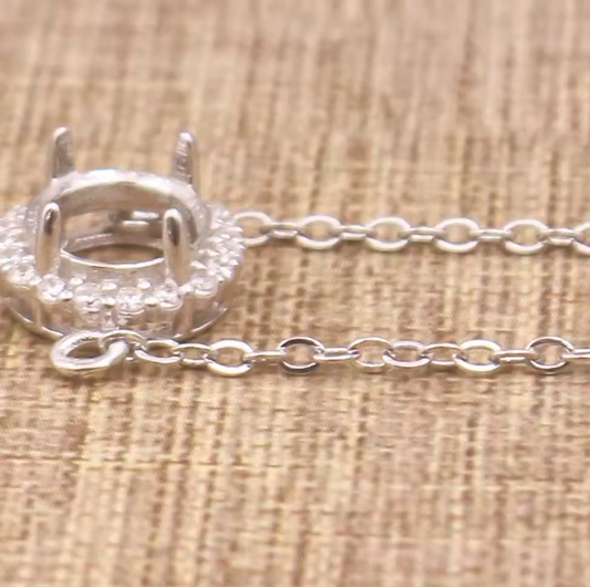 Miners Bench® Opal Friendly Prong / Claw Setting Sterling Silver 925 Necklace Setting for 8mm Round main stone part set with Cubic Zirconia SETN61-8