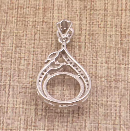 Miners Bench® Opal Friendly Prong / Claw Setting Sterling Silver 925 Pendant Setting for 1x Oval 10mmx8mm main stone part set with Cubic Zirconia SETP529-10-8