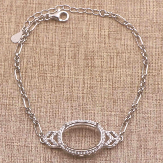 Miners Bench® Opal Friendly Prong / Claw Setting Sterling Silver 925 Bracelet Setting for 12mmx10mm Oval main stone part set with Cubic Zirconia SETB599-12*10