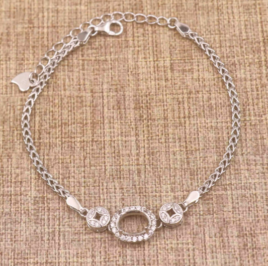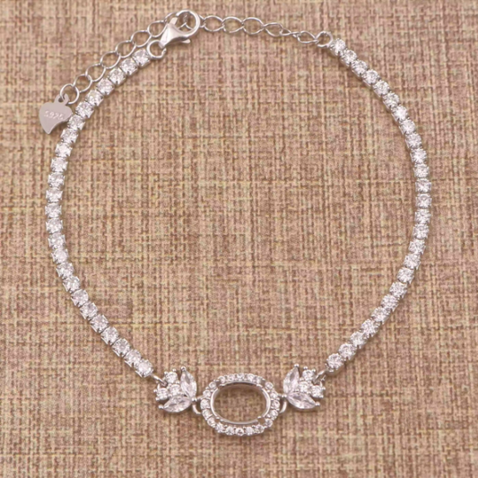 Miners Bench® Opal Friendly Prong / Claw Setting Sterling Silver 925 Bracelet Setting for 9mmx7mm Oval main stone part set with Cubic Zirconia SETB611-9X7