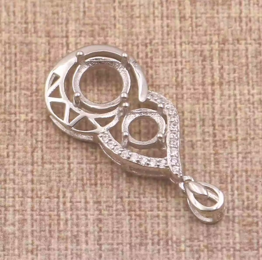 Miners Bench® Opal Friendly Prong / Claw Setting Sterling Silver 925 Pendant Setting for 2x Round 8mm & 6mm main stones part set with Cubic Zirconia SETP413Multi