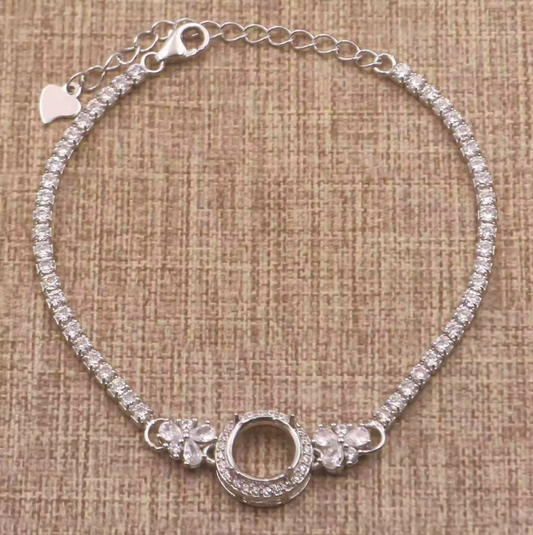 Miners Bench® Opal Friendly Prong / Claw Setting Sterling Silver 925 Bracelet Setting for 9mm Round main stone part set with Cubic Zirconia SETB506-9