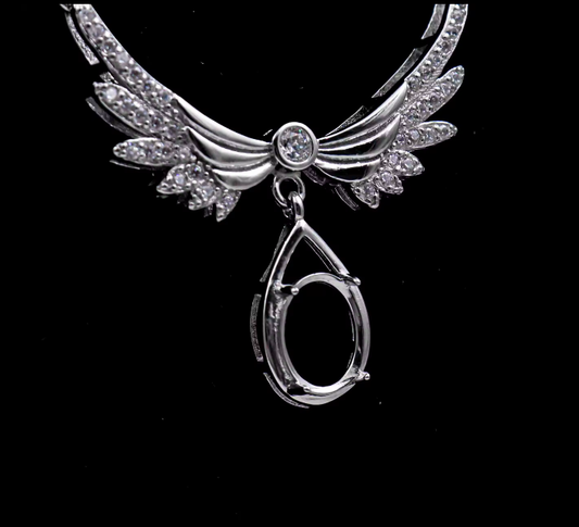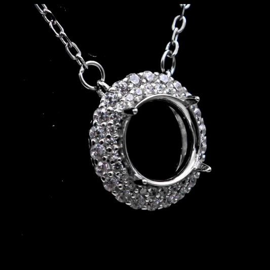 Miners Bench® Opal Friendly Prong / Claw Setting Sterling Silver 925 Necklace Setting for 1x stone 9mm x 7mm Oval part set with Cubic Zirconia SETN08-9x7