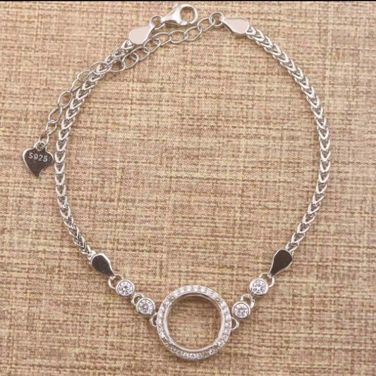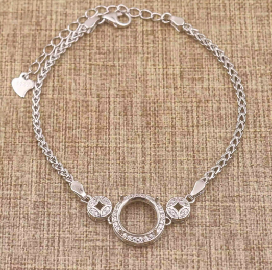 Miners Bench® Opal Friendly Prong / Claw Setting Sterling Silver 925 Bracelet Setting for 10mm Round main stone part set with Cubic Zirconia SETB585-10