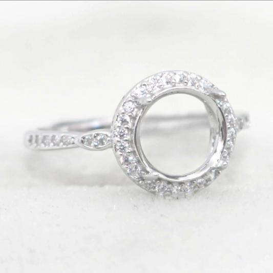 Miners Bench® Opal Friendly Prong / Claw Setting Sterling Silver 925 Adjustable Ring Setting for Round mm main stone part set with Cubic Zirconia SETRR09-8MM-A