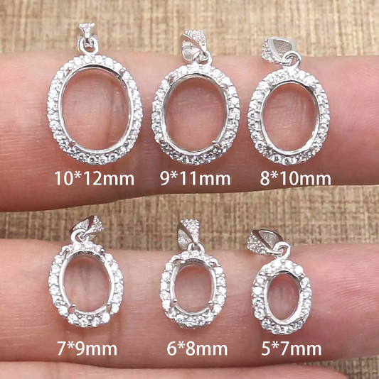 Miners Bench® Opal Friendly Prong / Claw Setting Sterling Silver 925 Pendant Setting for 1x Oval 8mmx6mm main stone part set with Cubic Zirconia SETP529-8-6