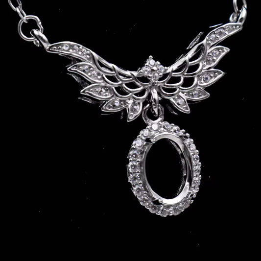 Miners Bench® Opal Friendly Prong / Claw Setting Sterling Silver 925 Necklace Setting for 1x stone 8mm x 6mm Oval part set with Cubic Zirconia SETN17-8x6
