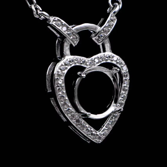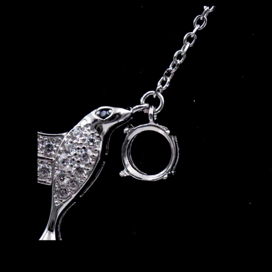 Miners Bench® Opal Friendly Prong / Claw Setting Sterling Silver 925 Necklace Setting for 10mm Round main stone part set with Cubic Zirconia SETN60-10