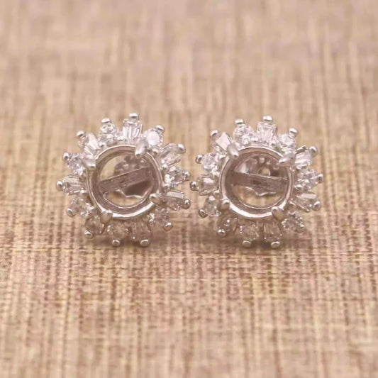 Miners Bench® Opal Friendly Prong / Claw Setting Sterling Silver 925 Earring stud pair Setting for Round 6mm main stones part set with Cubic Zirconia SETE359-6mm